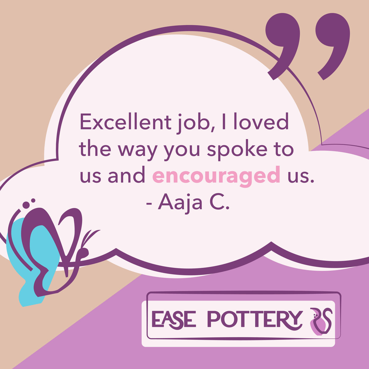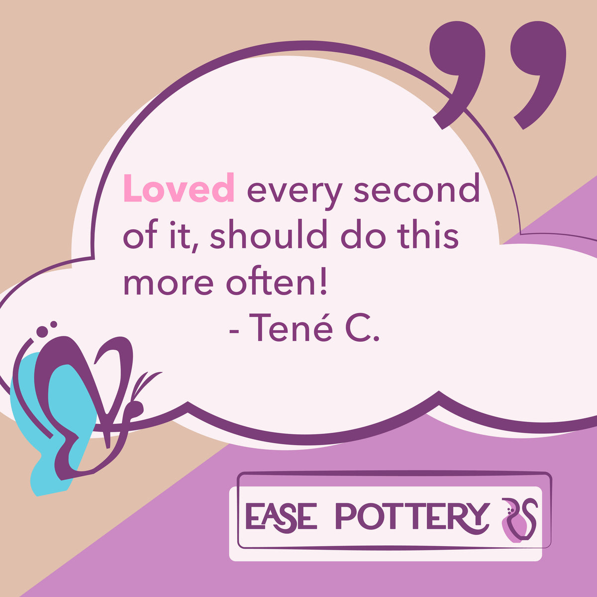 That’s why Ease Pottery was created. I know that many women are currently on their own road to rediscovery. I strongly believe in building community and promoting self growth. Oh yes, I can’t forget about relieving stress through art.