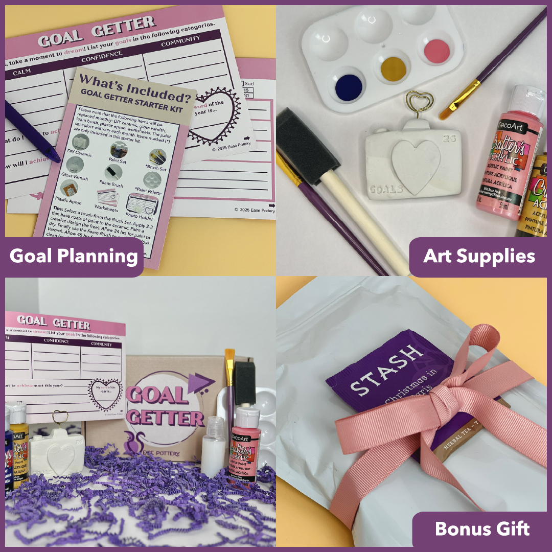 The Goal Getter Box also features simple, motivating planning worksheets designed to help you focus on one goal, one step at a time—the heart of our motto at At Ease Pottery.